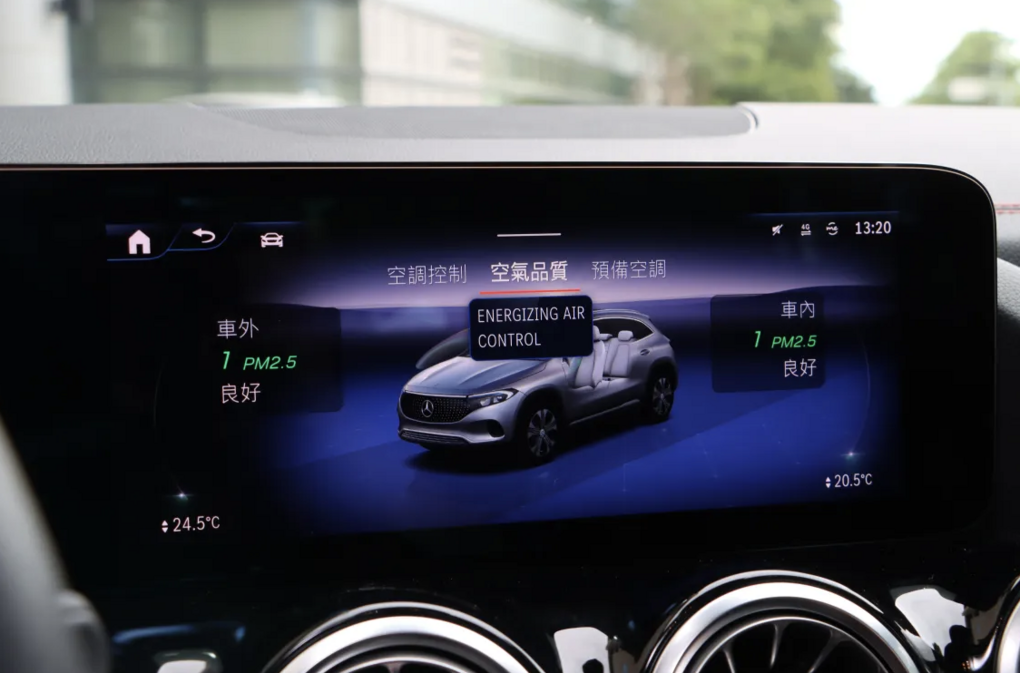 此外在螢幕下為實體的雙區恆溫空調介面,2024年式加入了能主動監測並過濾車內空氣中有害物質的Energizing智慧空氣淨化系統,手機無線充電裝置則置於中央鞍座前方,且鞍座上過往的手寫板位置由防滑材質取代,並設有駕駛模式控制鍵以及智能停車輔助開關。