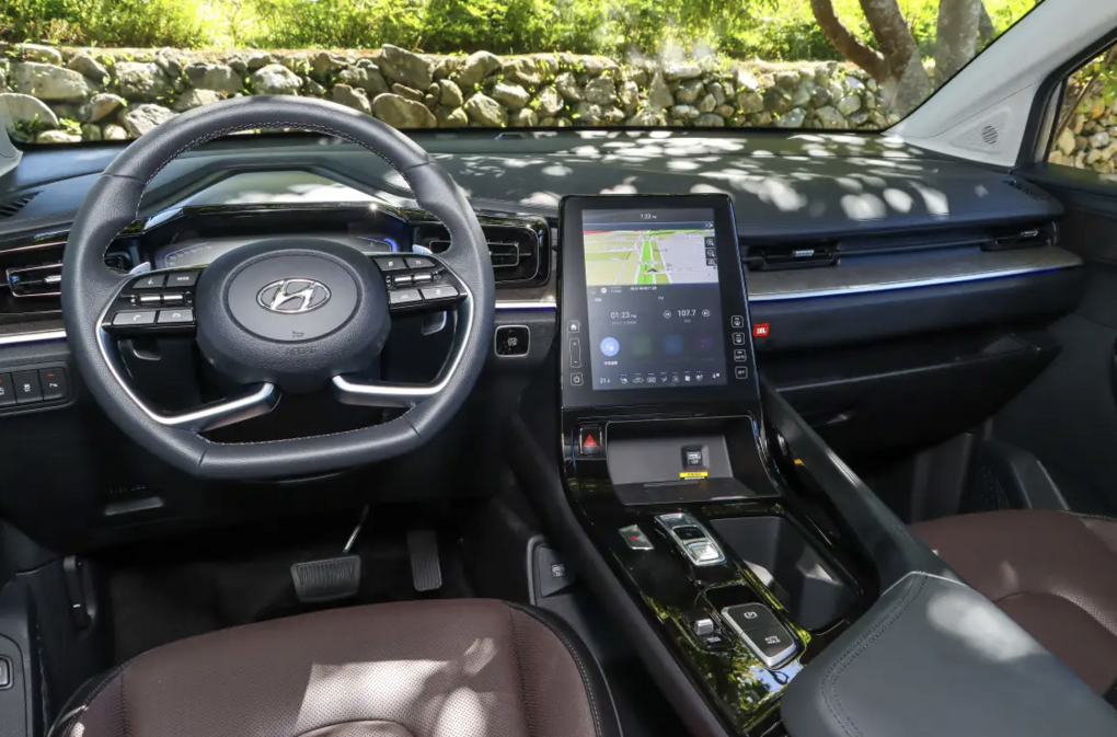 上方的豪華雙天窗灑下溫暖陽光,手邊有專屬的摺疊桌板與USB充電口,這一切都讓長途旅行從一種消耗,昇華為一種享受。回到駕駛座,雖然風采被後座搶去不少,但前艙的佈局同樣不馬虎。數位儀錶搭配中央直立的10.4吋整合式多媒體系統,科技感十足,並支援Apple CarPlay與Android Auto功能。音響系統更升級為JBL高階音效系統 ,無論是聆聽古典樂的細膩,或是流行樂的動感,都能提供劇院級的聽覺饗宴。全車的用料與組裝品質也維持了Hyundai一貫的高水準,觸手可及之處多為軟質塑料與皮革包覆,營造出優異的座艙質感。