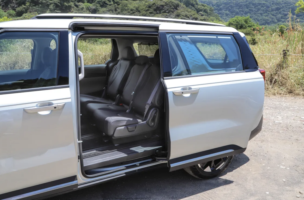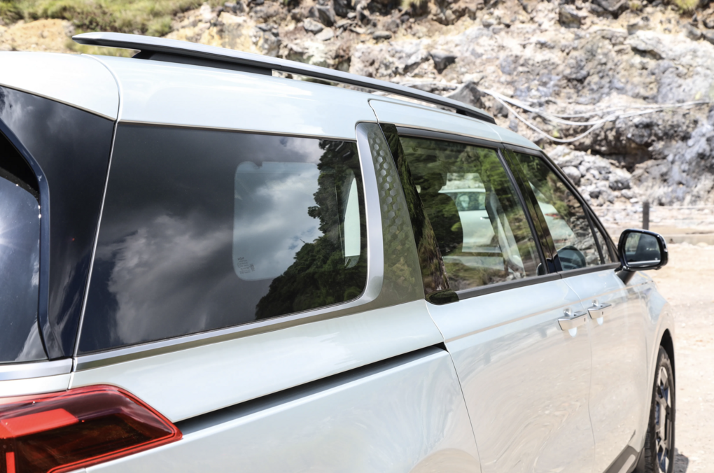 再沿著車頂行李架看至車側,擁有19吋雙色鋁圈之外,電動側滑門和電動尾門還支援便利的感應式開啟,也能從車鑰匙一鍵式全開與全關車門,且車鑰匙也能遠端預先發動車輛。