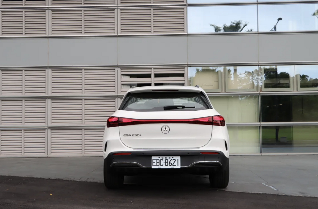 引進國內的小改款EQA 250+標配AMG Line套件,於車頭中央為立體鍍鉻星芒型水箱護罩,而水箱護罩上方的光條貫穿至兩旁整合自動調適遠燈輔助的標準型LED頭燈。同時再沿著車身同色輪弧看至車側,車頂標配鋁質車頂架和全景式電動玻璃天窗,且不僅具備雙側賓士Logo投射燈,輪圈為19吋AMG十輻式鋁圈樣式。最後於車尾,貫穿式LED尾燈為Mercedes-Benz EQ家族的全車系特徵,運動型後保桿含鍍鉻飾條之外,電動行李廂門結合了感應啟閉功能。