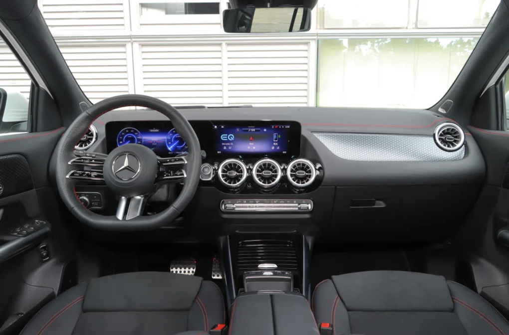 EQA 250+的座艙標配了MBUX智能控制、64色環景式內裝照明以及總輸出達710瓦的Burmester環場音響系統。首先在駕駛介面上,最前方標配抬頭顯示器,而10.25吋儀表提供多種顯示樣式切換,且多功能Nappa真皮方向盤後方附有動能回充調節撥片,提供三段力道調整。