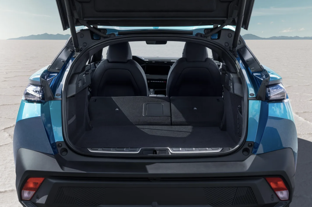 低伏的1.48公尺車身高度,FASTBACK斜背造型的流暢線條,打造低風阻係數的優雅姿態,而車側挑高腰線貫穿全車至車尾揚起之稜線設計,搭配尾門上方獅耳風格後擾流尾翼,匠心獨運識別,創造最佳化空氣流體力學;車側下方運動休旅濃厚氣息之黑色輪拱護板,延伸至後保險桿並於車尾交會,不僅增加視覺層次,巧妙降低掀背車尾厚重感,更型塑獅王奔馳的躍動身影。