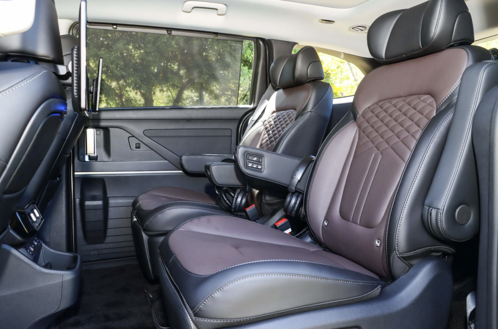 真正的精華,在於第二排那兩張獨立的「VIP皇家座椅」。這不僅僅是兩張椅子,更像是一個多功能的尊寵乘坐系統。它具備10向電動調整、電動腿靠、加熱與通風功能,無論任何季節、任何身形的乘客,都能找到最舒適的坐姿。透過一鍵切換,座椅能迅速進入「放鬆模式」,椅背後躺、腿靠升起,讓乘客能以近乎平躺的姿態在旅途中休憩。
