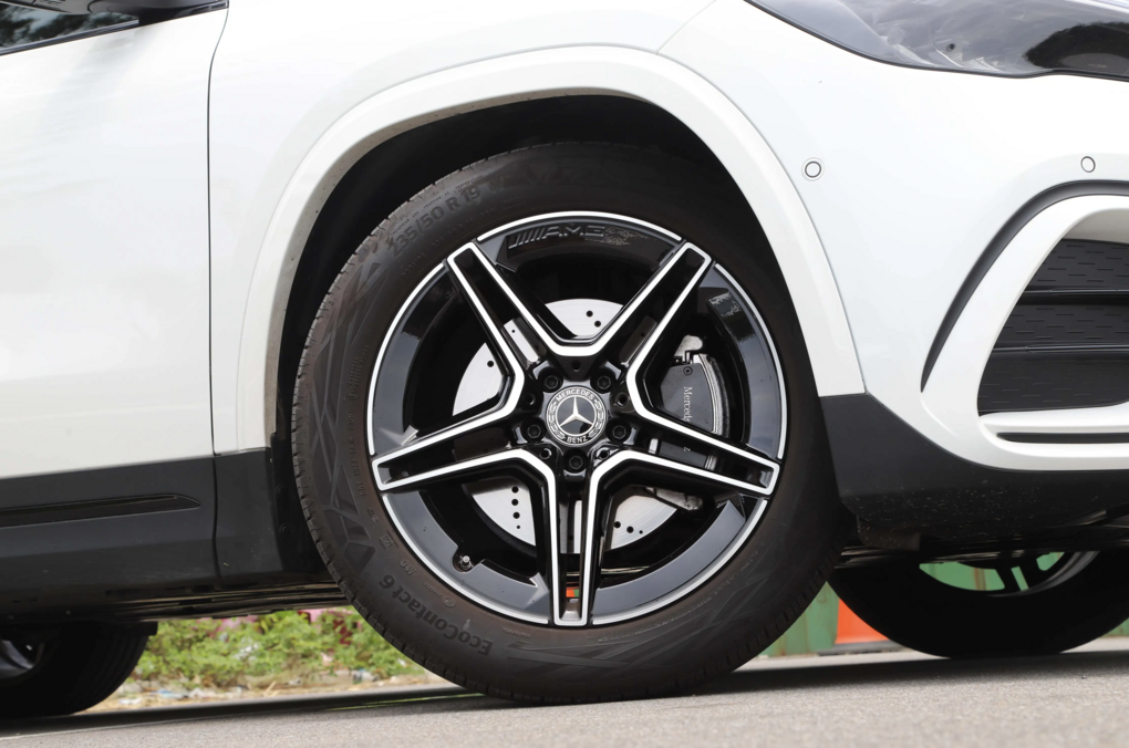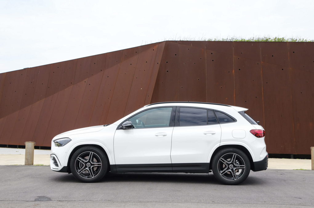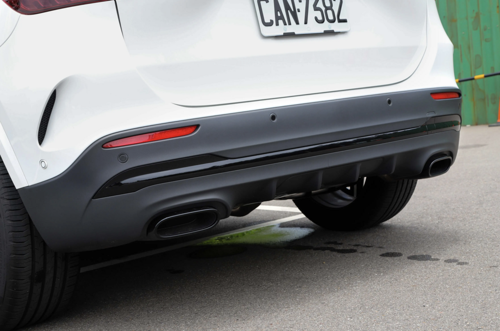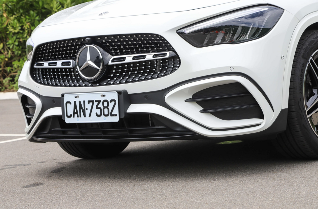 本次試駕的GLA 180摘星版,外觀最搶眼之處莫過於標配的「夜色運動套件」。包含水箱護罩、前後保桿下緣、車頂架、車外後視鏡、窗框飾條等處均以亮黑處理收邊,再搭配235/50 R19尺寸的AMG五輻雙肋式輕合金輪圈,整體視覺張力遠超傳統入門車款印象。